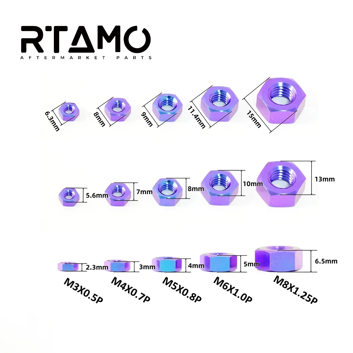 Item:RTAMO Titanium Hexagon Nut M3-M8 for Bicycle Motorcycle